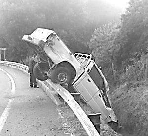 Conductor de una camioneta pierde el control y choca con una barrera