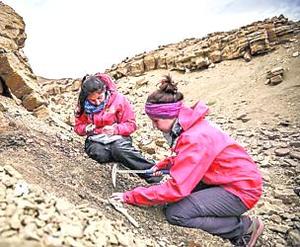 Equipo de expertos nacionales Descubre los restos de un dinosaurio semiarticulado en un cerro de la región de magallanes