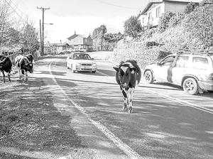 Vacas en la ruta