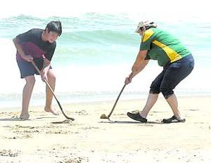 Turistas aprendieron palín y surf en la playa central de Maicolpué