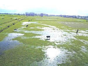 Las lluvias cubren con agua las verdes praderas osorninas